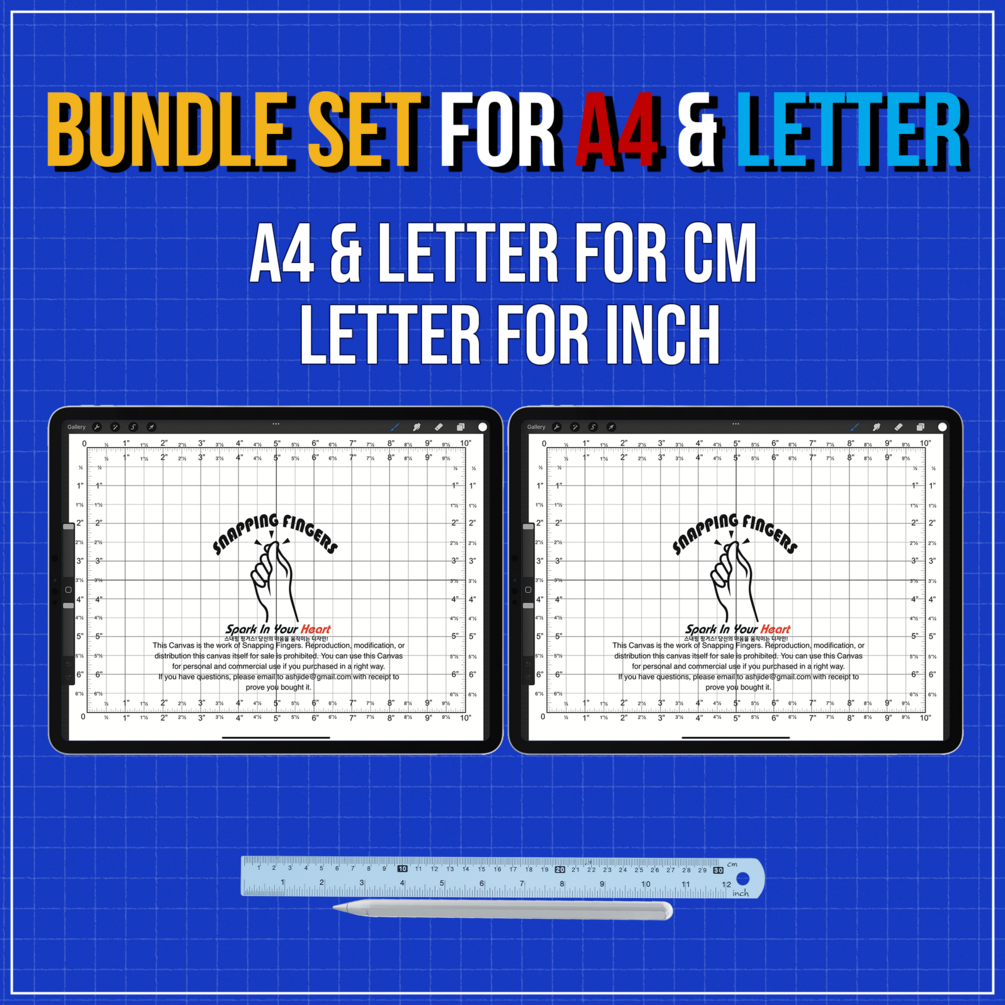 <Bundle For Cm & Inch Procreate Ruler Grid Canvases> 36 brushes RGB, CMYK, (Letter size, A4 for Cm, Letter for Inch)